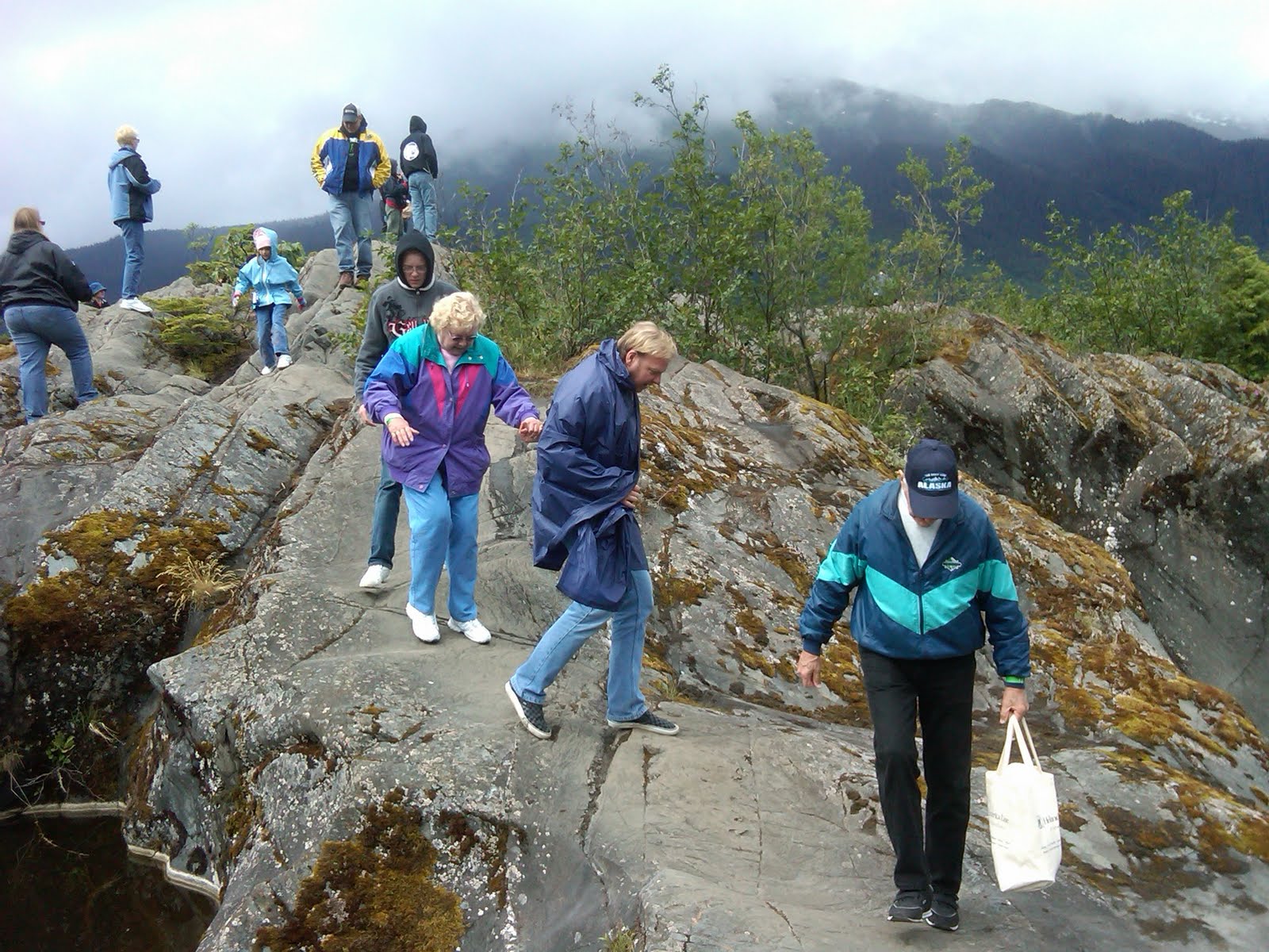 My family taking the long hard route on the rocks at Mendenhall Glacier!