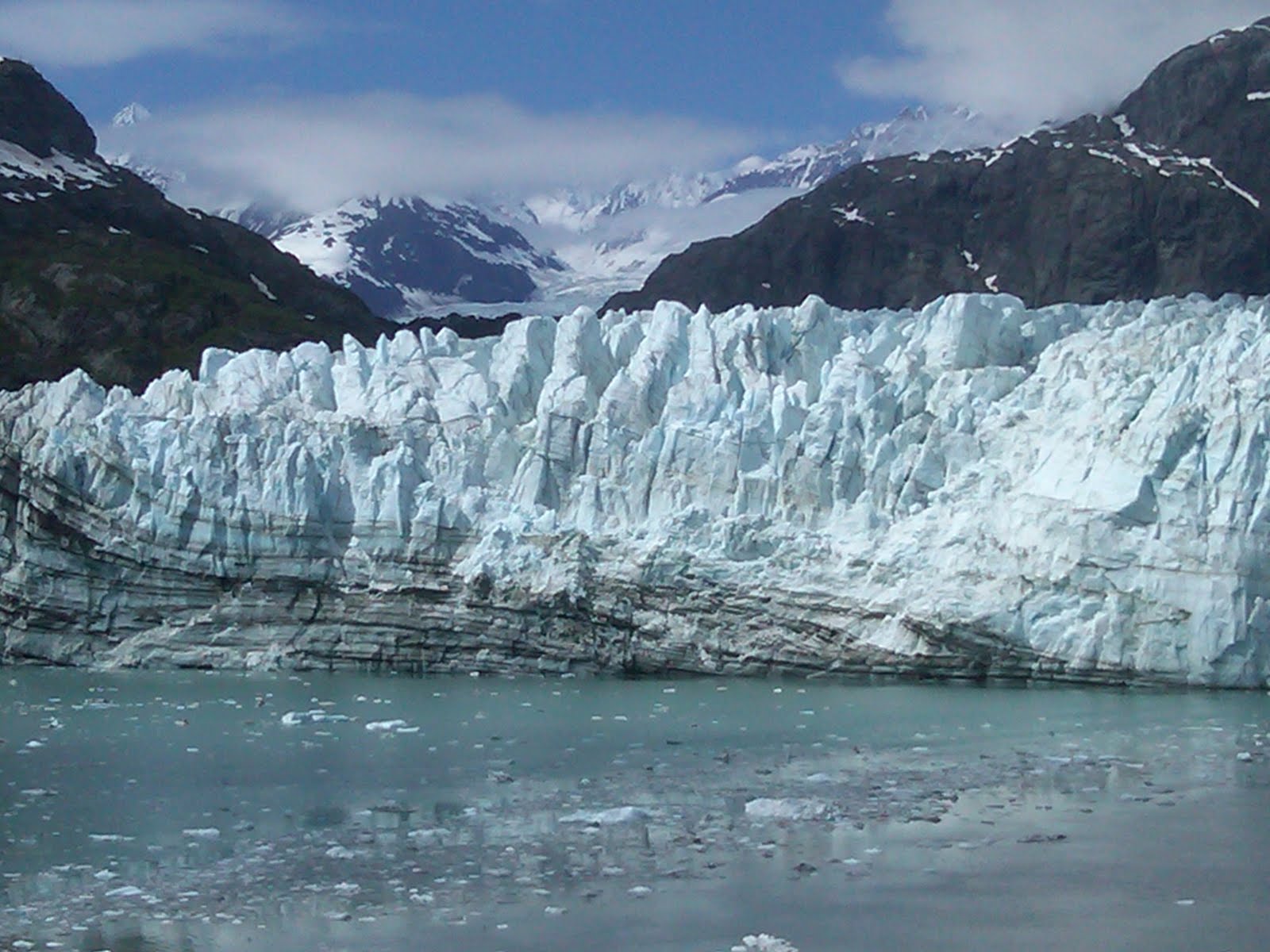 Ranger said glacier is 300' tall, 100' deep underwater, 21 miles long to 15,000' mountains! Awesome to see & HEAR 200' chunks calve & fall!